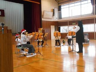 ブラスバンド部ミニ演奏会の様子(12/25 終業式前)