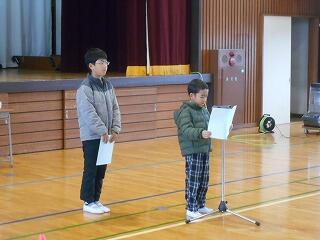 1校時に、第2学期の終業式を行いました。校長式辞の中では、2学期の生活を振り返った後、子供たちと2つの約束をしました。1つは、「安全に生活しましょう。」もう1つは、「新年のめあてをたてましょう。」です。そして、「3学期の始業式に、皆さんと元気に会えることを楽しみにしています!」と、結びました。