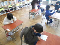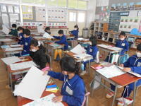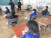 1年生も2年生も創作活動でした。1年生は、6年生を送る会に送るプレゼントづくりを行っていました。感謝の気持ちを込めて手作りの花や折り紙で折ったメッセージカードをつくっていました。2年生は、紙コップを2個と輪ゴムを利用して、飛び出すしかけを使った工作に取り組んでいました。