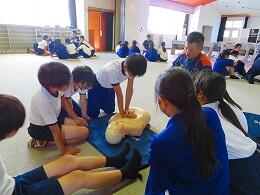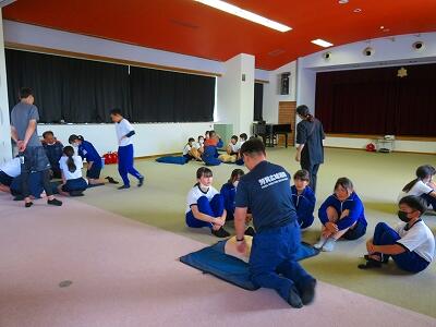 5・6年生は、消防署の方に来ていただき、救急救命教室を行いました。