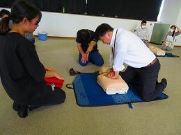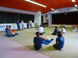 放課後、全職員で消防署の方から救急救命について、教えていただきました。
