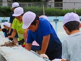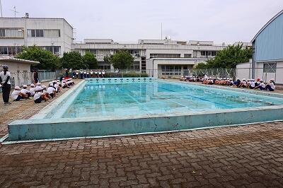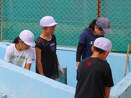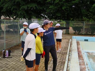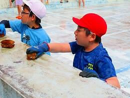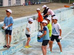 プール掃除を頑張るぞ、という意気込みが感じられます。