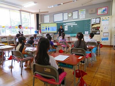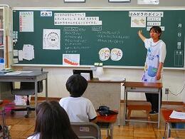 先週は、123年生でしたが、今週は、456年生が、給食センターの栄養教諭に来ていただき、食育の学習をしました。