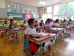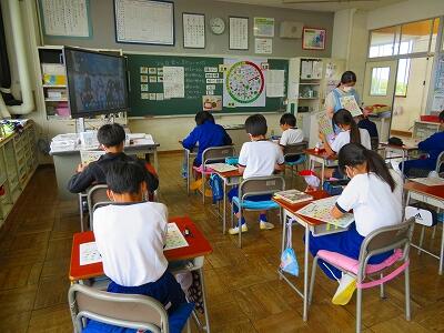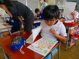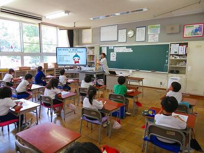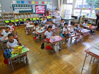 1年生も、6月になり学校にずいぶん慣れてきました。いい姿勢で話を聞くことができていますね。