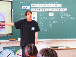 1年生は、水泳学習に入る前に、養護教諭からプライベートゾーンについて学習をしました。