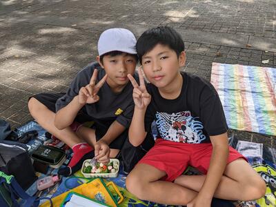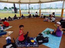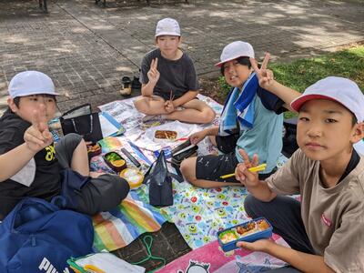移動して、市民会館の芝生広場で昼食としました。お弁当の準備、ありがとうございました。