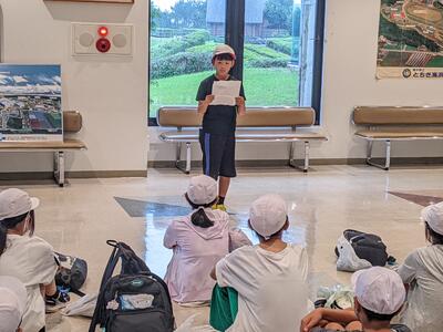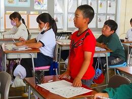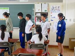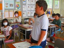 本校は、全校生が一体となった応援合戦を行います。そのため、応援団の子供たちは、毎日のように応援の仕方を話し合い、応援の練習を積んできました。それを、全学年に覚えてもらうため、朝教室を訪れて、今年の応援の仕方を教えています。