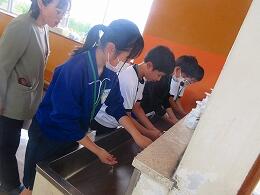食品表示について学習したり、手についている細菌を調べるために、水で洗った時と石鹸で洗った時の違いについて実験をしました。
