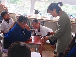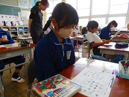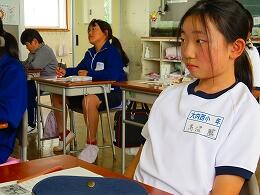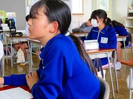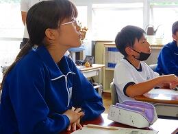 授業の始まり、先生の話を真剣に聞く態度が見られました。1年生でも、立派ですね。