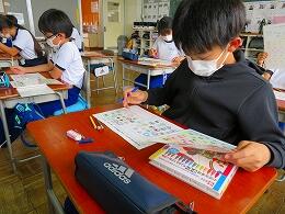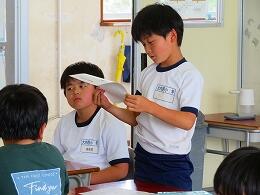 校舎に入ると、児童会室では、応援団の子供たちが集まって、どのような応援にするか話し合っていました。