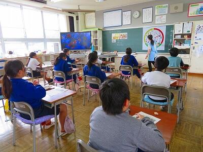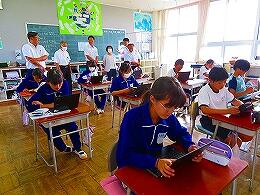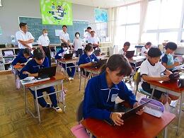 子供たちが、伸び伸びと育っている様子やタブレットをすいすい使っている様子、集中して落ち着いて授業に取り組んでいる様子を見ていただきました。