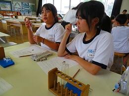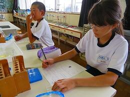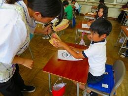 歯の模型を触りながら、6歳臼歯や前歯を観察しました。形の違いなどを観察することができました。