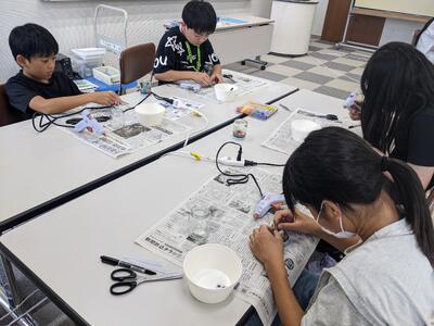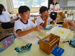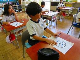 「ちょっと離すときれいだよ。」「どんな風な模様になった?」など、友達と協働的に学びを進めていました。