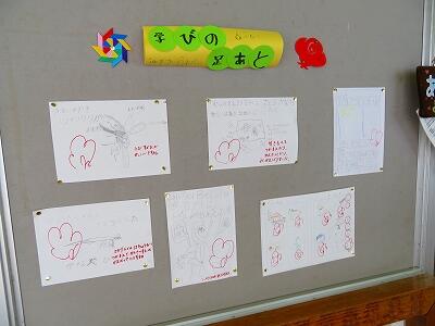 あおぞら教室の掲示物が、夏らしくなってきました。学びの足跡には、たくさんの花丸が咲いています。