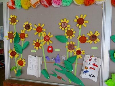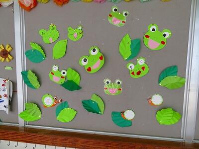 子供たちが、頑張って作ったようです。かわいらしいカエルとヒマワリが、みんなを迎えてくれます。