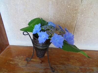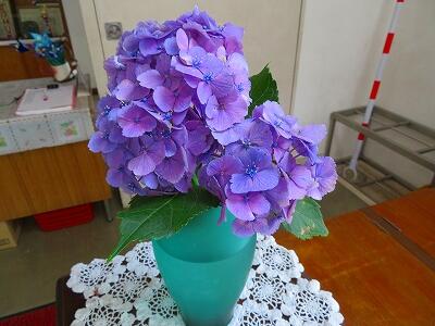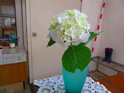 どなたが飾ってくれたのか、玄関には、かわいらしいアジサイが飾られていました。少し暑さが和らいた感じがしました。ありがとうございました。
