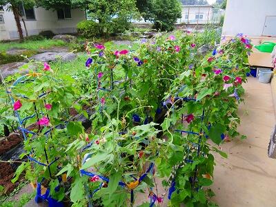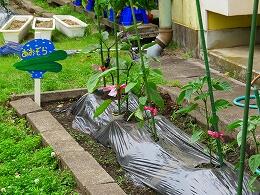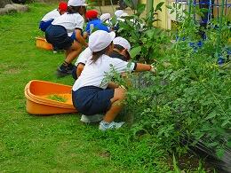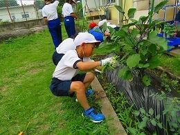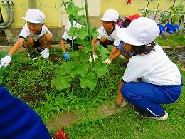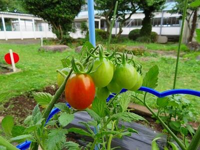 子供たちが一生懸命面倒を見ている畑では、ミニトマト、ナス、ピーマン、キュウリなどがなり始めました。