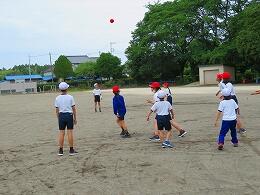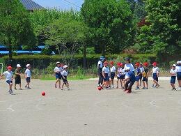 一つのグループは、何学年も交じってドッジボールをしており、もう一つのグループも、学年交じってサッカーをしていました。