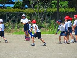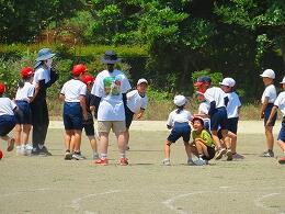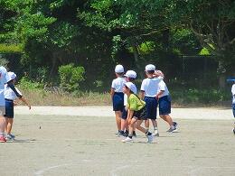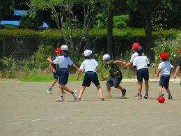 その中、3年生と4年生は、体育でベースボール型ゲームを行っていました。