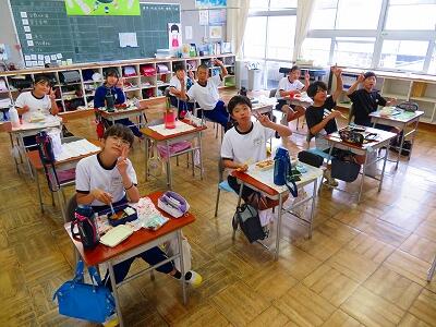 どのクラスも、「家の人に感謝の気持ちを込めて~。」と声を掛けると「ありがとう~。」と言って、満面の笑みで写真を撮らせてくれました。