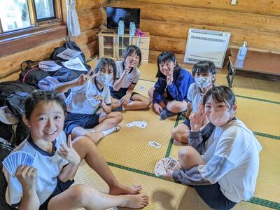 館内を少し散歩したあと、宿泊するロッジに向かいました。初めてロッジに泊まる子もいて、ワクワクしている様子でした。
