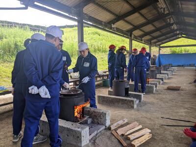 途中、何度も水分補給させながら行いました。涼しくなるといいですね。