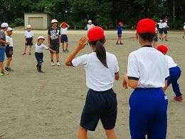 応援団の子供たち、だいぶ声が出るようになってきました。一生懸命頑張る姿は、大変立派です。