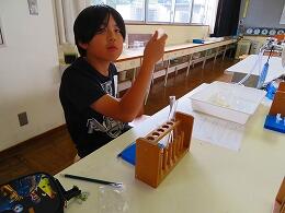 1年生は、様々な箱を集めて、積み重ねて高くすることができるか、頑張っていました。