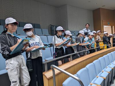 プラカード担当も、集まってプラカードの持ち方など、教えてもらっていました。