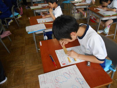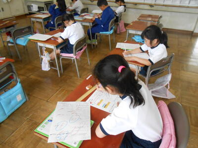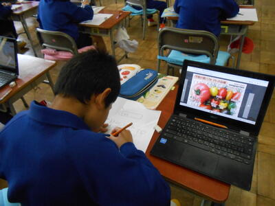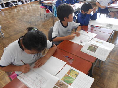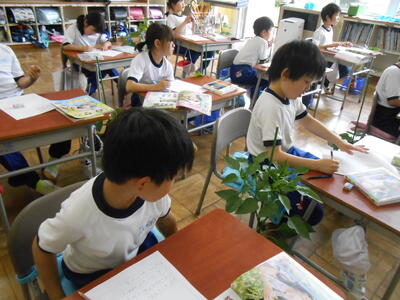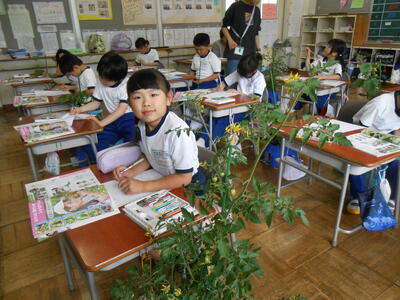 2年生は、大きくなった野菜の観察です。よく見て詳しく書くことができていました。