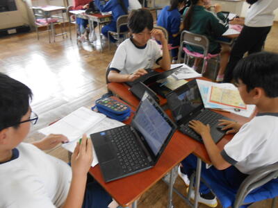 5年生は、臨海自然教室での体験を新聞にして表していました。自分のアイデアを生かして写真やタイトルを工夫するなど、個性あふれる新聞でした。6年生は保健の学習で、病気について調べていました。自分はどんなことに気を付けていけばよいかを話し合っていました。