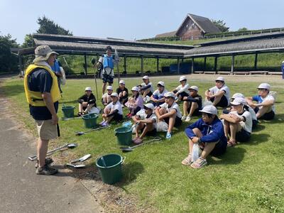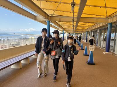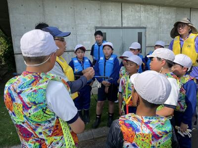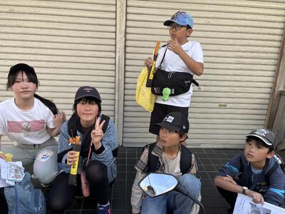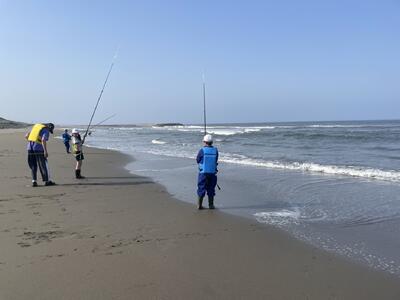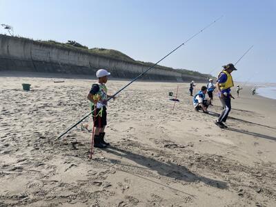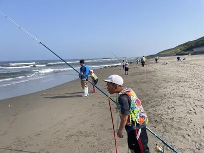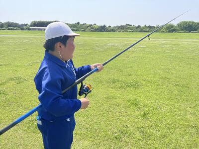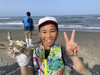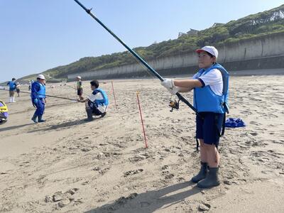 投げ釣り体験です。なかなか、難しい釣りでしたが、カニを釣った子がいました。