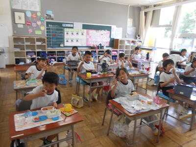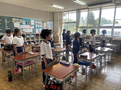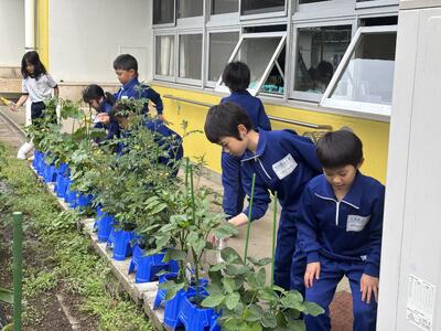 1週間が始まりました。今日も元気に登校できた子供たち、あいさつの声も響いていました。植木のアサガオや野菜に水やりをすませ、朝の会でも元気に歌う姿がありました。