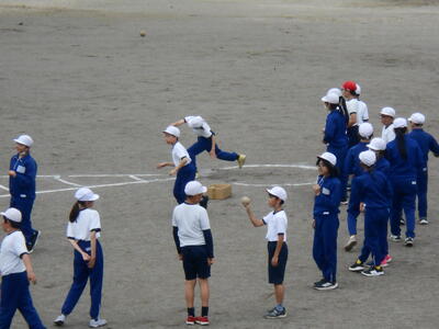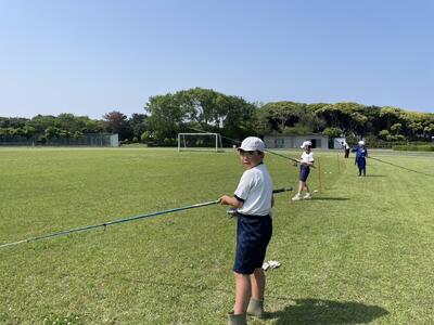 5.6年生は、合同体育で、ソフトボール投げの練習・記録でした。さすがに、遠くまで投げられる子が多かったです。