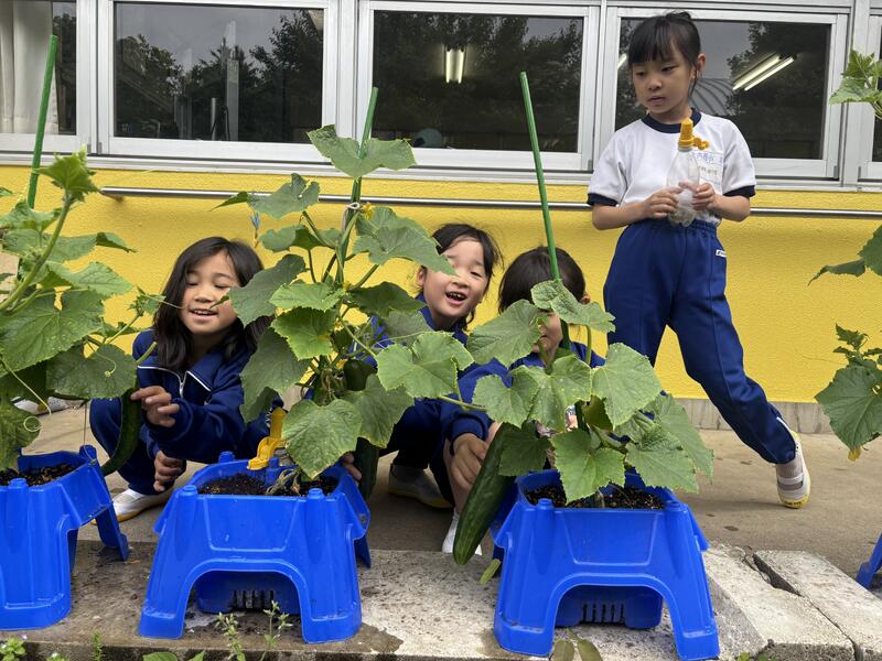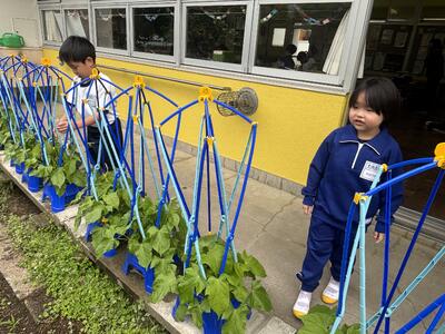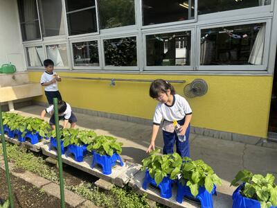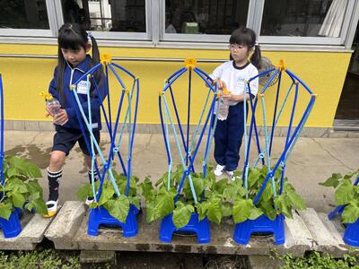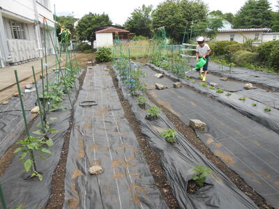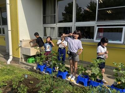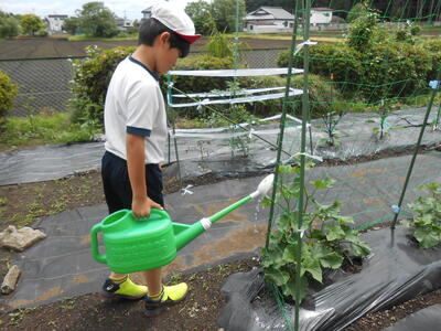 さすがに高学年です。2人とも「みんなのために」の気持ちで水やりをしてくれていました。みんなのおかげで、すくすくと畑の野菜も育っています。