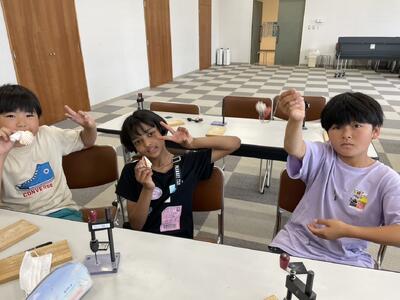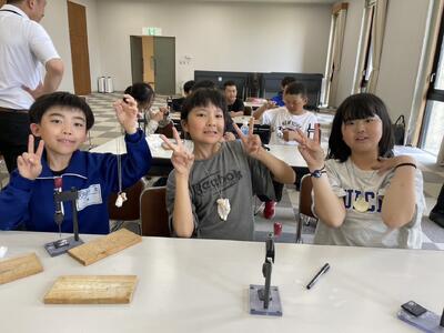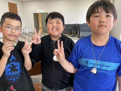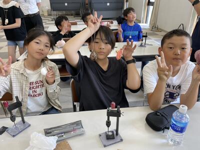 貝殻のキーホルダー作りの様子です。みんな上手に完成です。