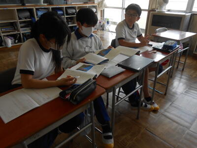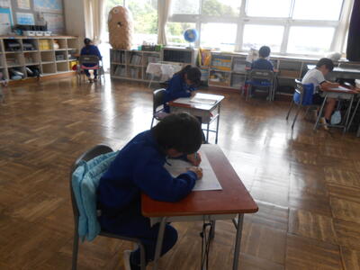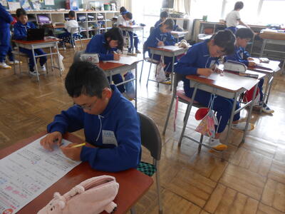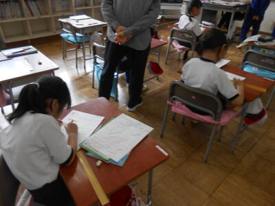 明日から修学旅行の6年生は、家庭科の調理実習の振り返りでした。土日に、家でも食に関する仕事を実践したという子もいました。学校で学習したことを家庭や今後の生活で生かすことができることが大切です。テストをしている学年もありました。