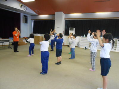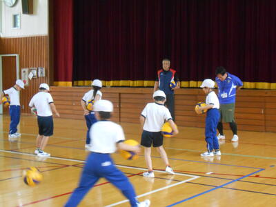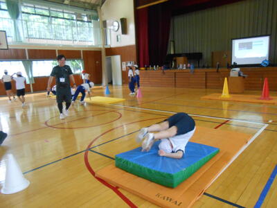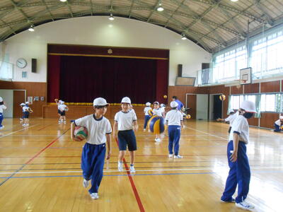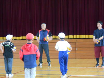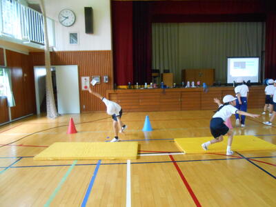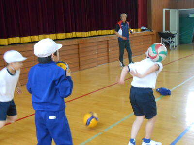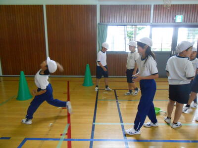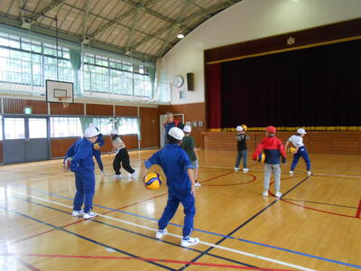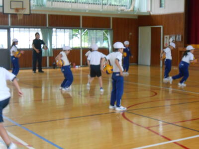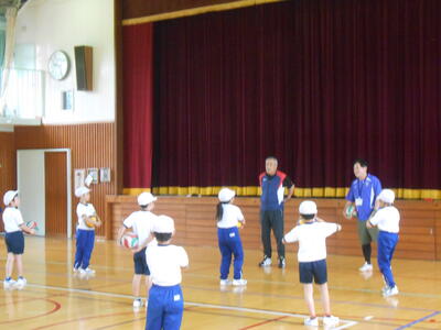 今日は、エキスパートティーチャーにお越しいただき体力向上のために、体育の学習を指導していただきました。ボールを取り入れたゲーム感覚で取り組める内容でした。よく話を聞き、一人一人頑張っていました。