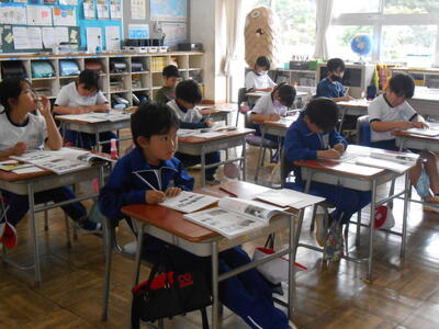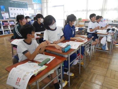 昨日まで臨海自然教室だった5年生も全員登校できました。楽しかったという反面、疲れたという声も聞こえました。