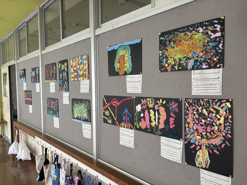 昨日作成していた、図工の作品が出来上がり、展示されていました。みんなとても素敵です。