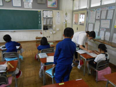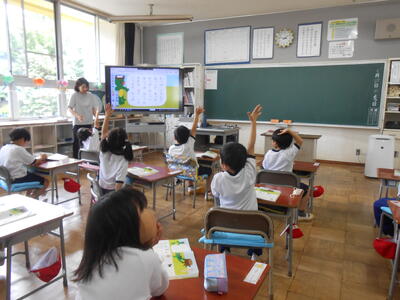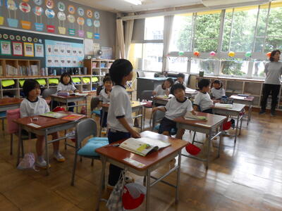 1年生は、国語の学習で、ひらがなを読んで一人ずつ発表していました。