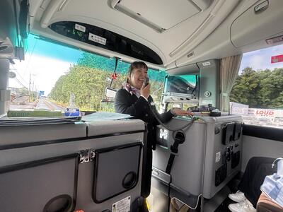 2か所のトイレ休憩をして、順調に進んでおります。バスの中では、江ノ電のDVDを見せてもらいました。
