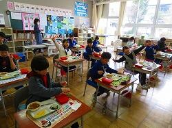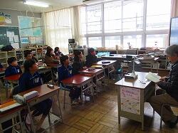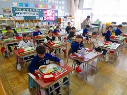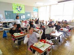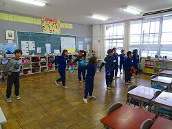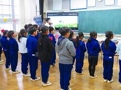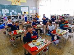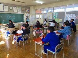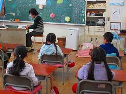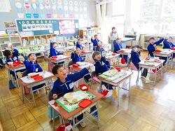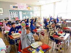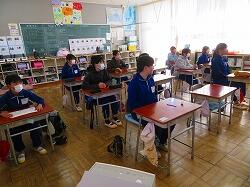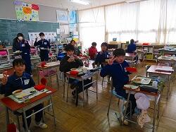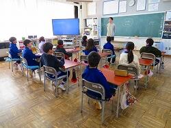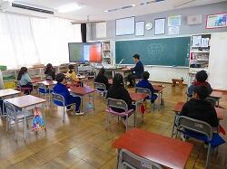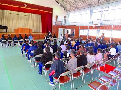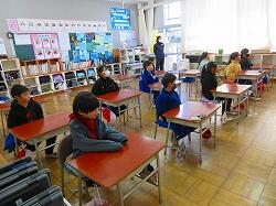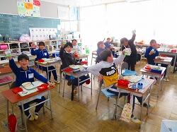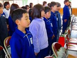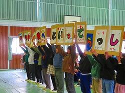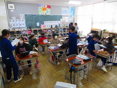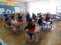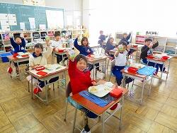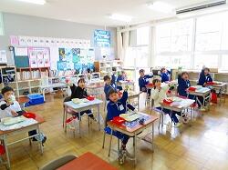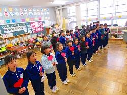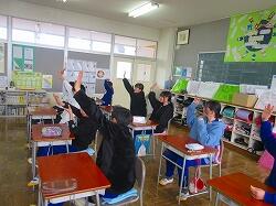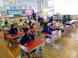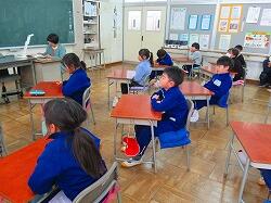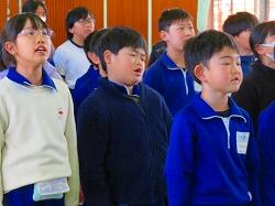 読み聞かせが終わり、朝の会が始まりました。校歌や式歌などを歌う声が校舎に響き渡っています。