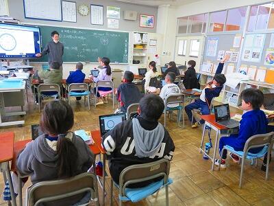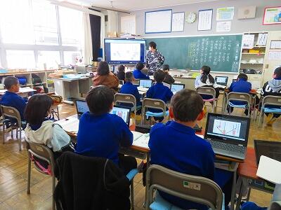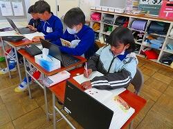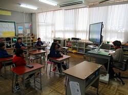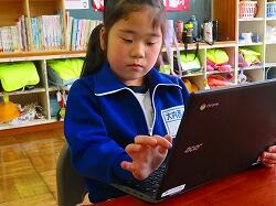 1年生も、学習が終わった子は、タブレットを活用して学習に取り組んでいました。