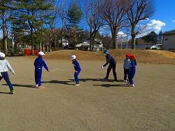 南校庭に行くと、縄跳びをしたり、鬼ごっこをしたりして楽しむ子供たちがいました。