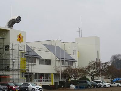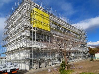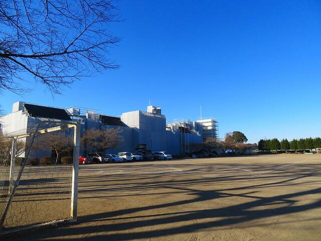 一部校舎が見えるようになりました。足場が外れるのが楽しみです。