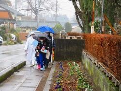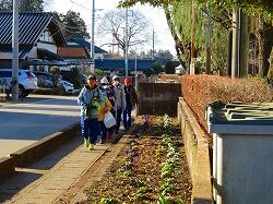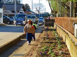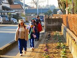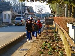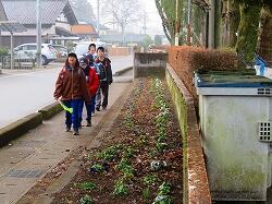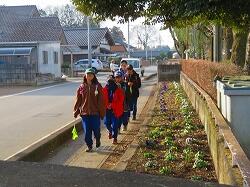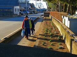 暖かい日差しを浴びて、子供たちが登校してきました。