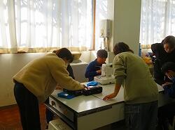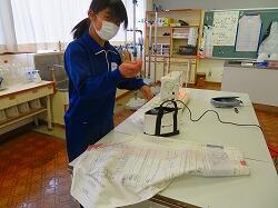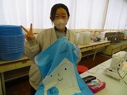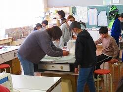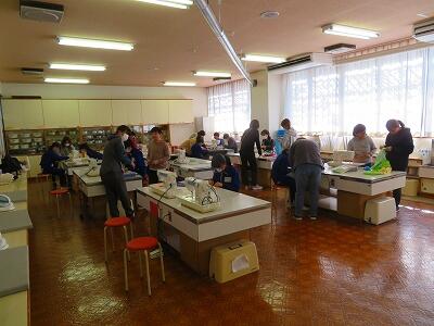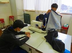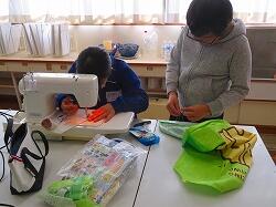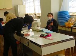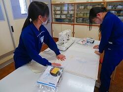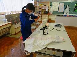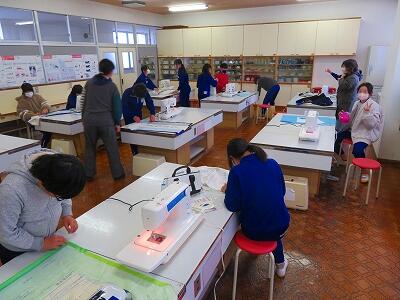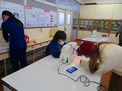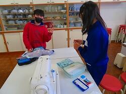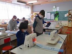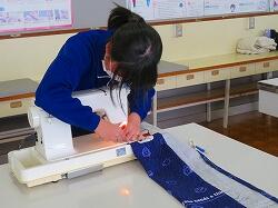 5年生は、家庭科でエプロンつくりに取り組んでいました。