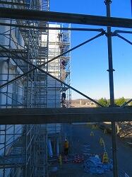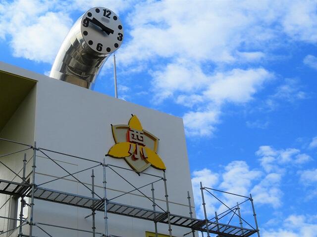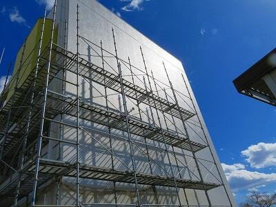 足場外しの作業が今日も行われています。安全に気を付けて、よろしくお願いします。