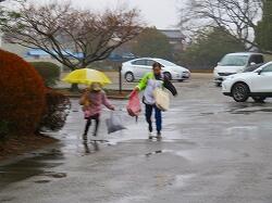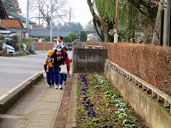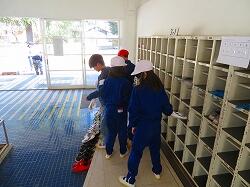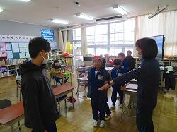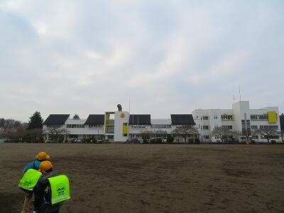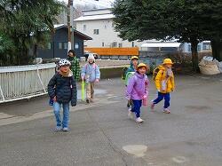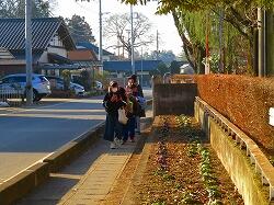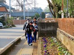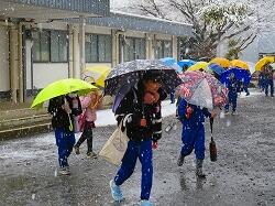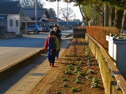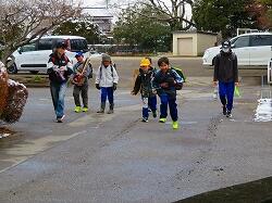 日差しはありましたが、冷たい風が吹く中、子供たちが登校してきました。